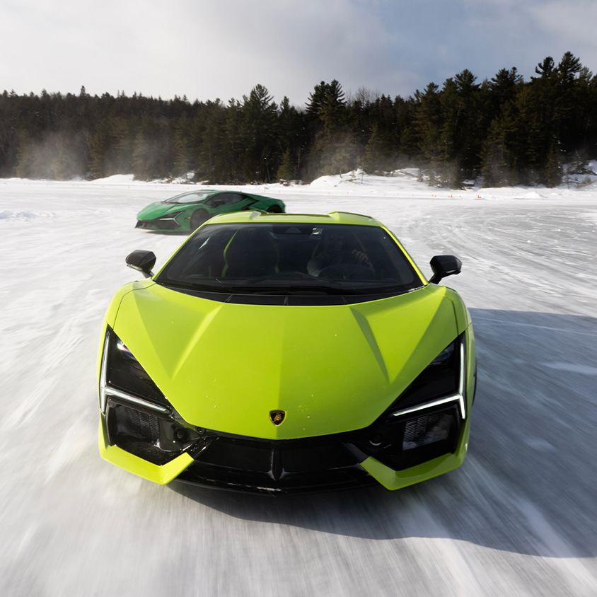 The 2025 Lamborghini Esperienza Neve hosted customers from across North America who travelled to Hotel Sacacomie in Quebec for a 2-day experience with Lamborghini on the snow and ice.
